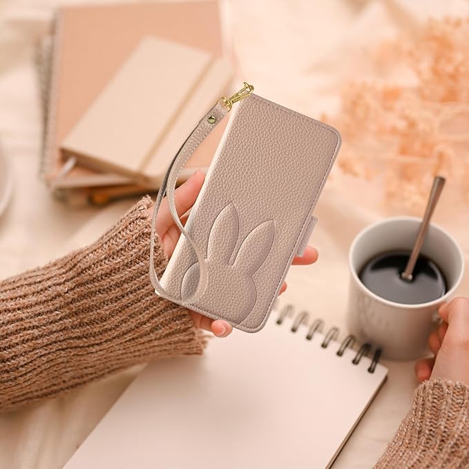 Reddylin 対応 iPhone 17 Pro Max ケース 手帳型 かわいいウサギ おしゃれ いphone17promax ケース 手帳型 スタンド機能 カード収納 アイフォン17プロマックス 携帯ケース 全面保護 衝撃吸収 耐久性 マグネット式 iphone 17promax スマホケース iphone17プロマックス カバー 仕上がり ご家族やご友人へのプレゼントにも,アンズ色