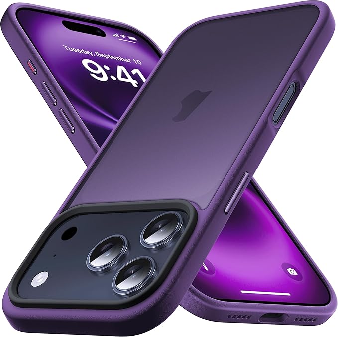 Anqrp iPhone 17 Pro Max 用 ケース 半透明 耐衝撃 滑り止め 米軍MIL規格 指紋防止 マットケース ストラップホール付き ワイヤレス充電対応 スマホケース アイフォン17 プロマックス カバー 6.9インチ ダークパープル