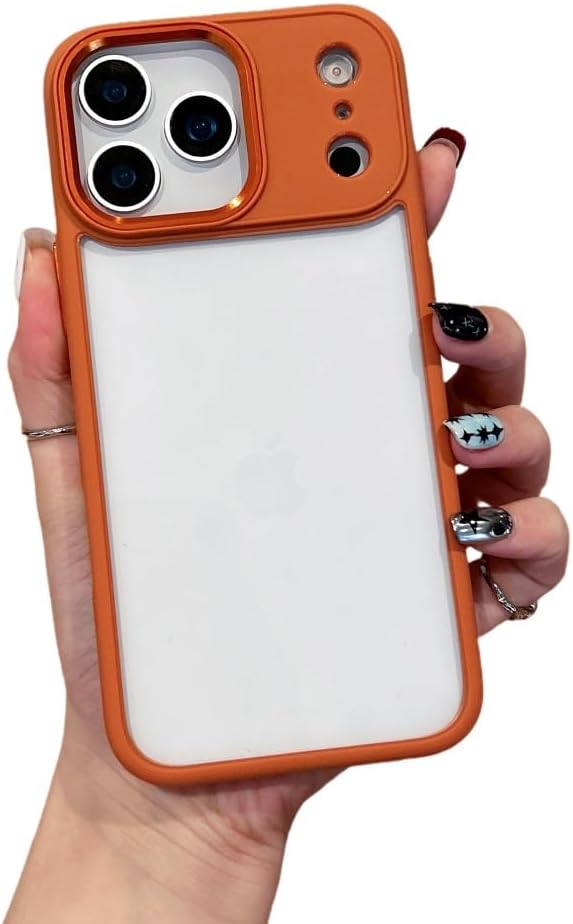 iPhone 17 Pro Max 対応 ケース クリア 透明 アイフォン17ProMax 用 カバー 2色 配色 薄型 可愛い レディース 背面カバー ハードケース 嵌め込み,オレンジ