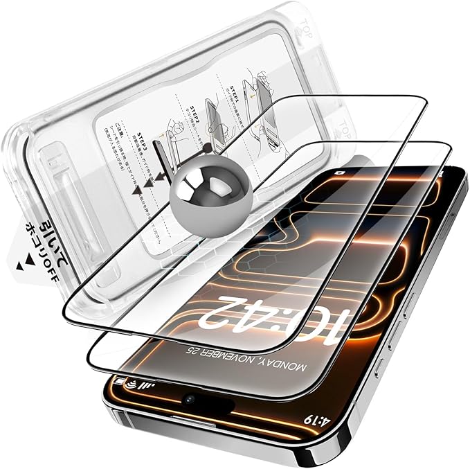 【強化黒縁 10Hの硬度 飛散防止でさらに安心】アイフォン 17 Pro Max 用ガラスフィルムは、硬度10Hを誇る強化ガラスを採用しており、極細ブラックフレームデザインが曲面に沿って画面全体を覆う設計となっております。一般のガラスと比較して10倍の耐衝撃性を実現いたしました。このような優れた耐久性が高く評価され、擦り傷からスクリーンをしっかりとお守りいたします。外部からの衝撃をフィルムが効果的に吸収し、画面の破損リスクを最小限に抑えます。さらに、特殊な飛散防止構造を採用しているため、万が一スマートフォンをお落としになりガラスが割れた場合でも、破片の飛散を防止する安心設計となっております。どうぞご安心ください。