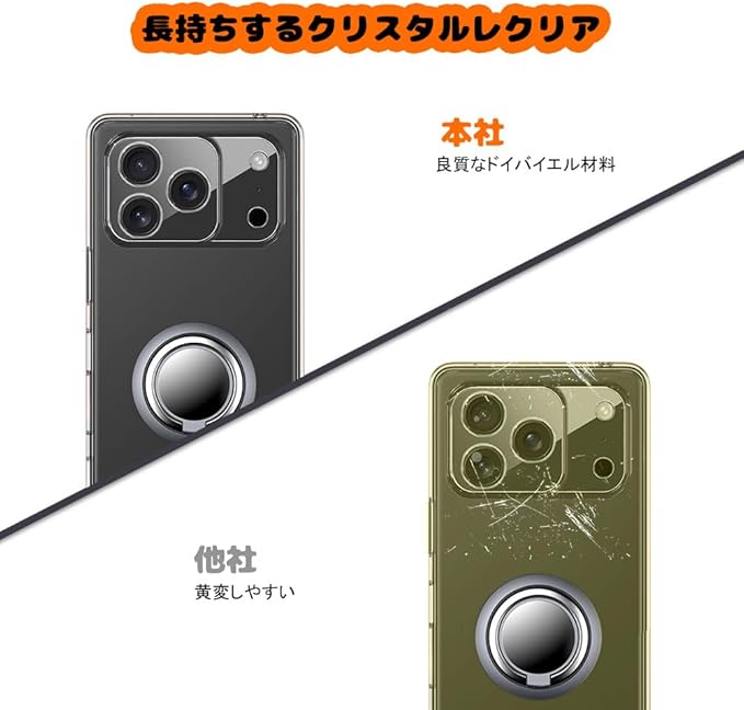 対応 iPhone 17 Pro Max ケース リング付き 透明 アイフォン17プロマックス スマホケース リング クリア シリコン 薄型 スタンド機能 耐久 滑り止め(クリア)