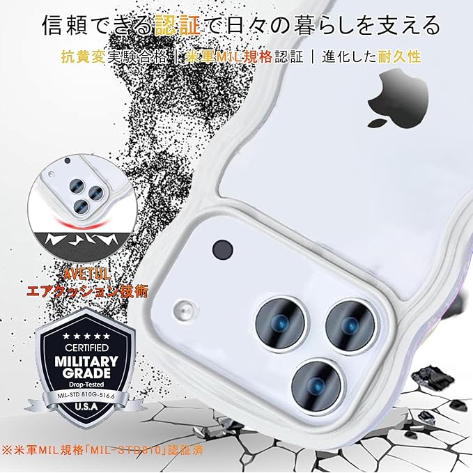 AVETUL iPhone 17 Pro Max ケース クリア ウェーブ アイフォン17プロマックスケース 韓国 うねうね おしゃれ 黄ばみなし かわいい ソフトTPU 滑り止め 薄型 軽量 2イン1 iPhone 17 Pro Max スマホケース ワイヤレス充電対応 ストラップホール付き アイフォン 17 プロマックス ウェーブ カバー (クリア/ホワイト)