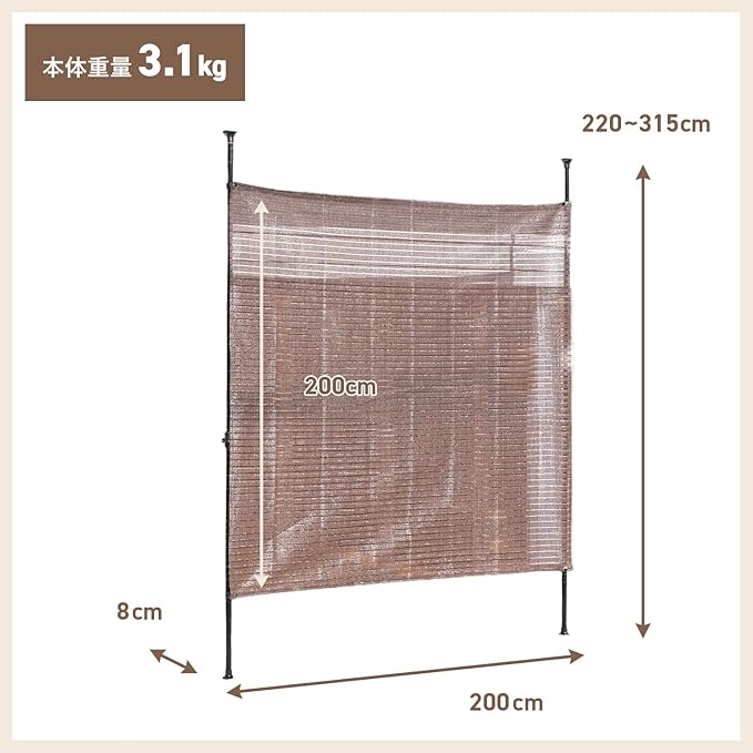 サイズ:幅200cm 奥行8cm 高さ220-315cm、重量3.1kg