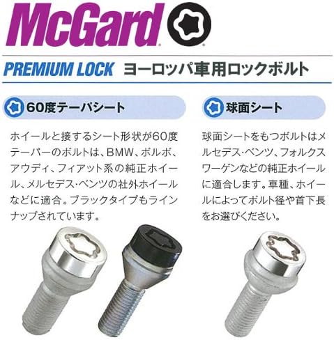 ホイールと接するシート形状が60度テーパーのボルトは、BMW、ボルボ、アウディ、フィアット系の純正ホイール、メルセデス・ベンツの社外ホイールなどに適合。ブラックタイプもラインナップされています。