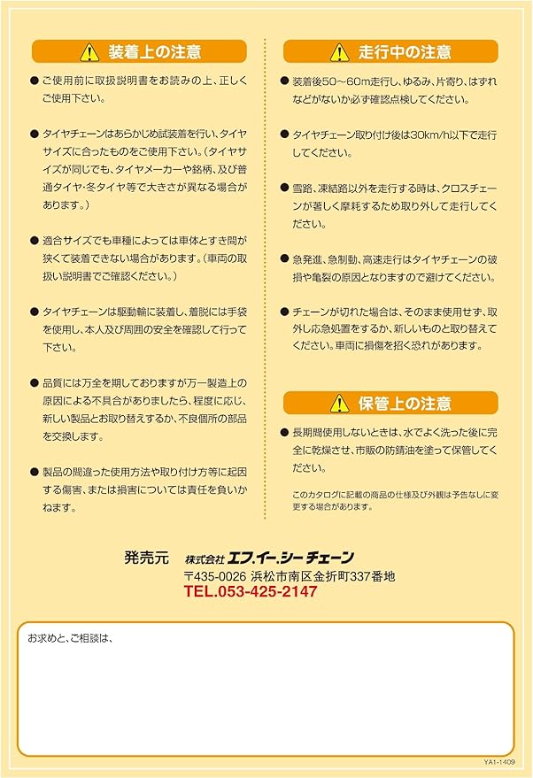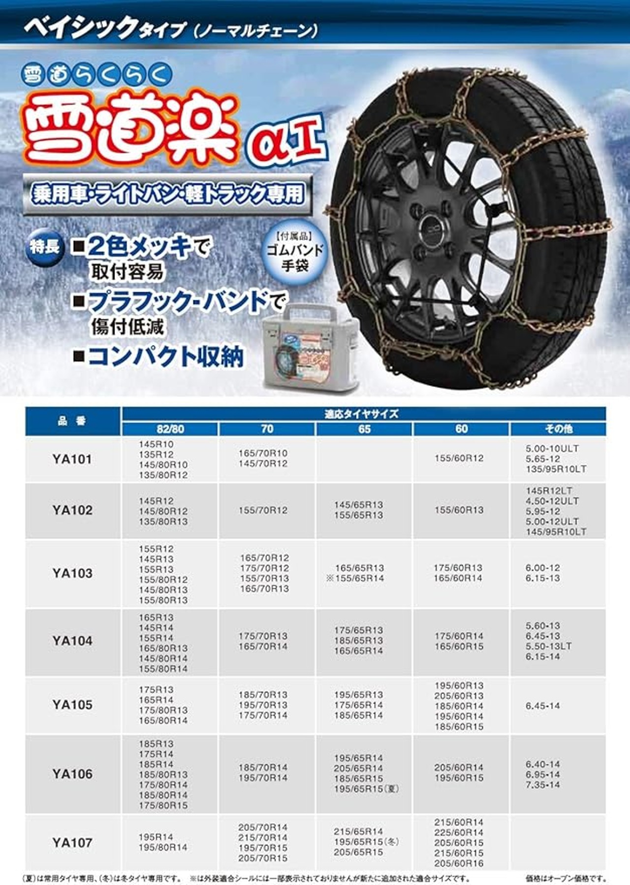エフ・イー・シー(FEC) 金属タイヤチェーン [ 雪道楽 α1 ] ラダー型 YA102
