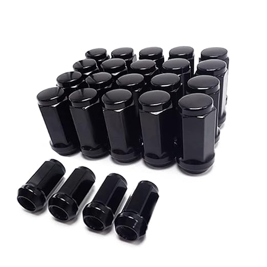 WELLVIE ホイールナット M14 P1.5 スチール ロング ナット 24個 袋 19HEX ブラック シルバー エスカレード サバーバン タホ ユーコン キャデラック シボレー カーパーツ カー用品 ドレスアップ カスタムナット (ブラック)