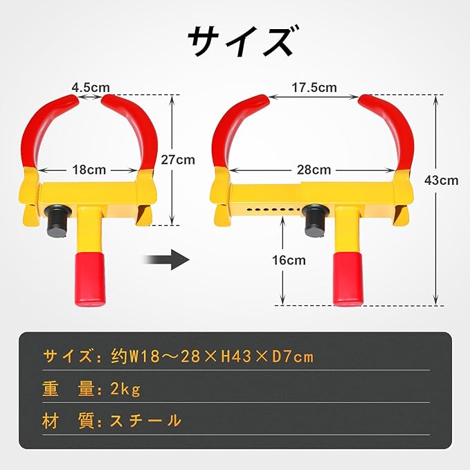 Sondsilen ホイールロック タイヤロック 盗難防止 車 バイク 車用ロック カーセキュリティ 最強 防犯 頑丈 防塵 防水 サイズ調整可能 簡単設置