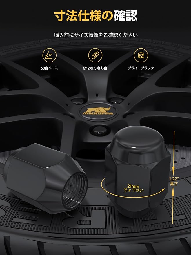 適用車種: 20個のナットはトヨタ クラウン アクア ヴォクシー ヴェルファイア ハリアー ; マツダ CX-5 CX-8 ロードスター MAZDA3 CX-30; 三菱; ダイハツに適用。テーパー座のホイールに対応しているホイールナットです