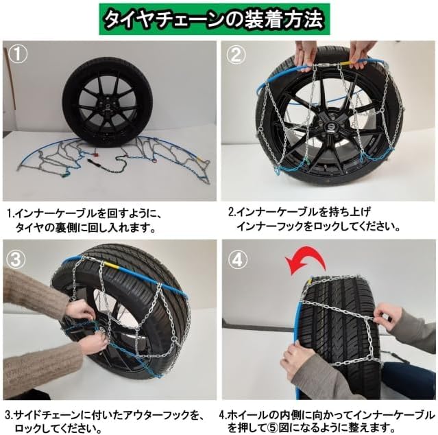 ■ジャッキアップ不要で取り付け可能 ■横滑りに強く静寂性に優れた亀甲型 ※事前に、取り付け、取り外し練習を行ってください ※タイヤチェーン装着時は30km/h以下で走行してください。(高速道路も同様)※この商品はラジアルタイヤ(夏用タイヤ)基準となっております。スタッドレスタイヤなど、一部装着できない場合があります。※装着にはタイヤと車体の間隔(クリアランス)が5cm以上必要です。また、車体と積載物の合計重量が2t以内でないと装着できません。 ■チェーン幅:9mm ■乗用車用 ※貨物自動車全般やトラック(1BOXバン/ミニバンを含む)には使用できません。(車輌重量2.0t未満) 適合タイヤサイズ:195/80-15 205/60-17 205/65-16 205/70-15 215/45-18 215/55-17 215/60-16 215/70-14 215/70-15 225/40-18 225/55-15 225/60-15 235/55-16 235/60-13 235/60-15