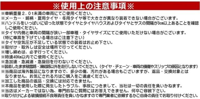 ■チェーン幅:9mm ■乗用車用 ※貨物自動車全般やトラック(1BOXバン/ミニバンを含む)には使用できません。(車輌重量2.0t未満)
