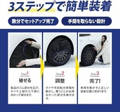 ■2枚1セット【本製品をご使用時の注意事項】※着脱の際はパーキングブレーキをかけ、エンジンを停止してください。また、安全が十分に確保されている平坦な場所で行ってください※時速40キロ以下で走行してください※アスファルトや砂利道などでの走行は避けてください※発進時はゆっくりと発進してください※車両を駐車される場合は本製品を取り外してください