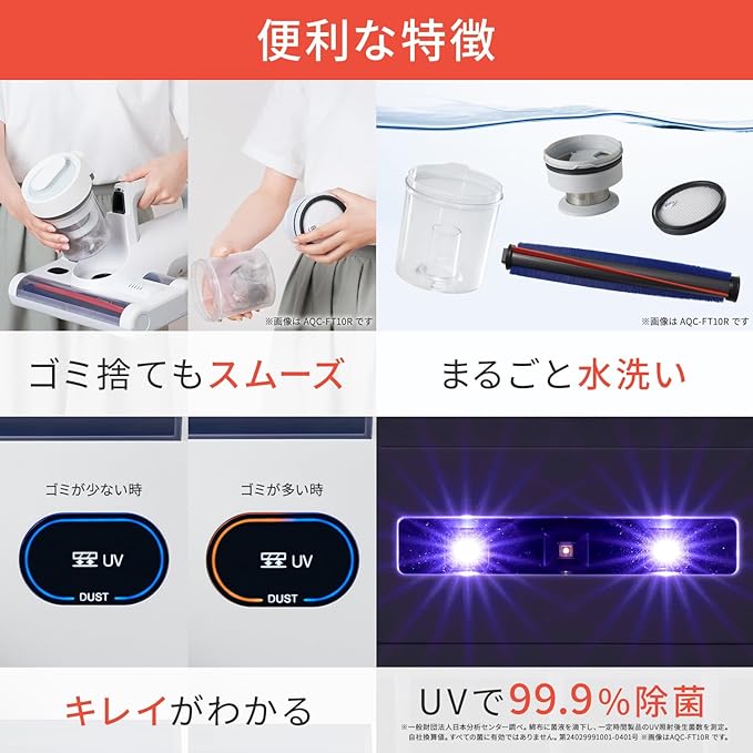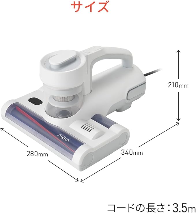 アクア (AQUA) 布団クリーナー ハイエンド (たたき28,800回) ダニ掃除機 ダブルブラシ (梅雨対策/UV除菌/ハウスダスト/花粉) 布団掃除機 水洗い可 CF10WR