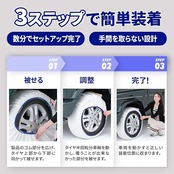 2枚1セット・手袋付き 本製品をご使用時の注意事項 着脱の際はパーキングブレーキをかけ、エンジンを停止してください。また、安全が十分に確保されている平坦な場所で行ってください。時速40キロ以下で走行してください。アスファルトや砂利道などでの走行は避けてください。発進時はゆっくりと発進してください※車両を駐車される場合は本製品を取り外してください。本製品を装着しての走行の際には、破損や外れなどがないか、定期的に確認してください。本製品は緊急脱出用となります。ご使後は汚れを洗い落とした後、十分に乾かしてから保管してください 融雪剤などが残っていると劣化の原因となります。装着の際は駆動輪に装着して下さい。3cm程の穴が開いた場合、スノーソックスの交換目安となります。
