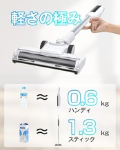 ●【掃除のストレス、そろそろ手放しませんか?】コードが絡まったり、掃除機が重くて腕が疲れることはありませんか?コードレス掃除機 EB102 が、毎日の掃除をより快適にします。◆【超軽量設計】スティックモードはわずか1.3kg、ハンディモードは約0.6kg。片手で軽く持ち上げられ、スムーズに操作できます。重い掃除機による疲れを軽減します。◆【自立式】スタンド不要で、自立設計を採用。床用ブラシヘッドにはロック機構を搭載し、軽く置くだけで固定されます。壁に立てかける必要がなく、使いたいときにすぐ手に取れます。掃除後はその場に置くだけで収納可能。狭い玄関やトイレ、車のトランクでもスッキリ片付けられます。