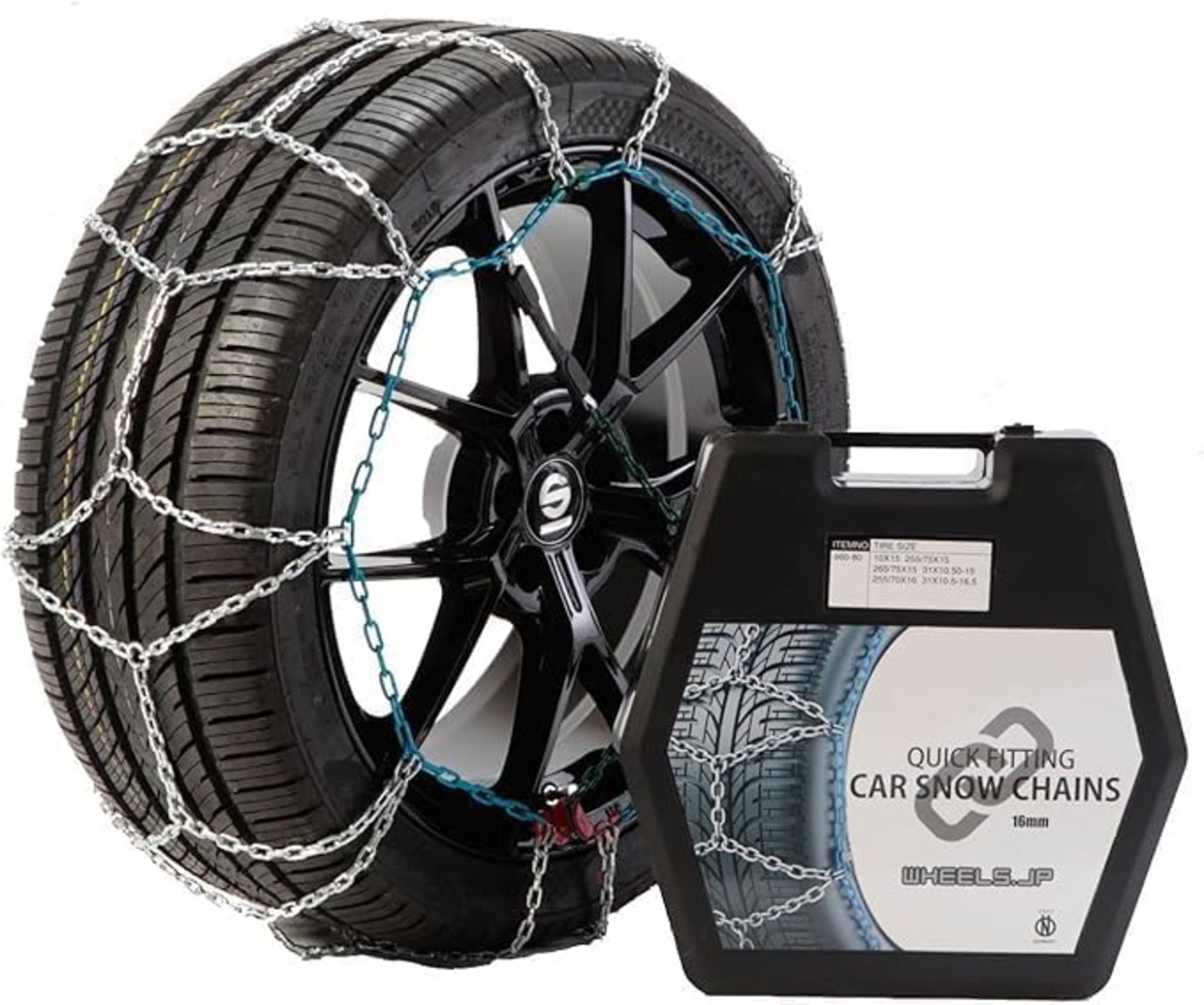 ■ジャッキアップ不要で取り付け可能 ■横滑りに強く静寂性に優れた亀甲型 ※事前に、取り付け、取り外し練習を行ってください ※タイヤチェーン装着時は30km/h以下で走行してください。(高速道路も同様)※この商品はラジアルタイヤ(夏用タイヤ)基準となっております。スタッドレスタイヤなど、一部装着できない場合があります。※装着にはタイヤと車体の間隔(クリアランス)が5cm以上必要です。また、車体と積載物の合計重量が2t以内でないと装着できません。 ■チェーン幅:12mm ■乗用車用 ※貨物自動車全般やトラック(1BOXバン/ミニバンを含む)には使用できません。(車輌重量2.0t未満) 適合タイヤサイズ:195/75-14 205/70-14 215/70-14 195/70-15 205/65-15 175/80-16 175/75-16 195/65-16 175/60-19 185/60-17 185/65-17 185/75-15 195/55-17 200/60-15 205/40-18 205/50-16 215/35-18 215/45-16 215/50-15 215/60-14 225/30-18 225/35-17 225/40-16 225/55-13