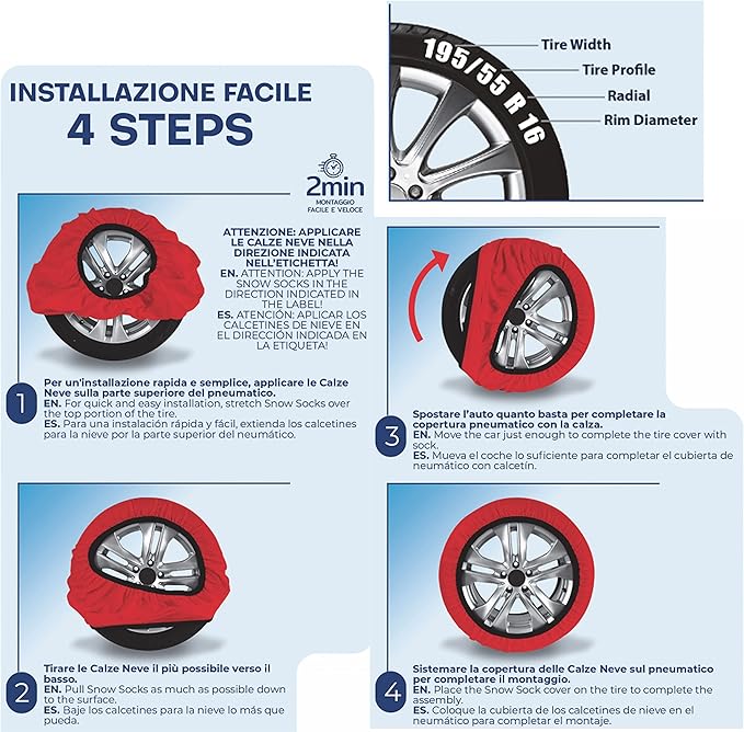 スノーソックスとスノーチェーンを統合した新しい欧州承認 EN 16662-1 を取得。 ・氷雪路用タイヤ滑り止め ・氷雪混在路でも走行できるようにタフな設計 ・アスファルト舗装された無積雪路を時速50km以下で120km走行し、認可機関によるテスト済み(試験終了後、再使用可能であれば認可) ・装着時間はわずか2分