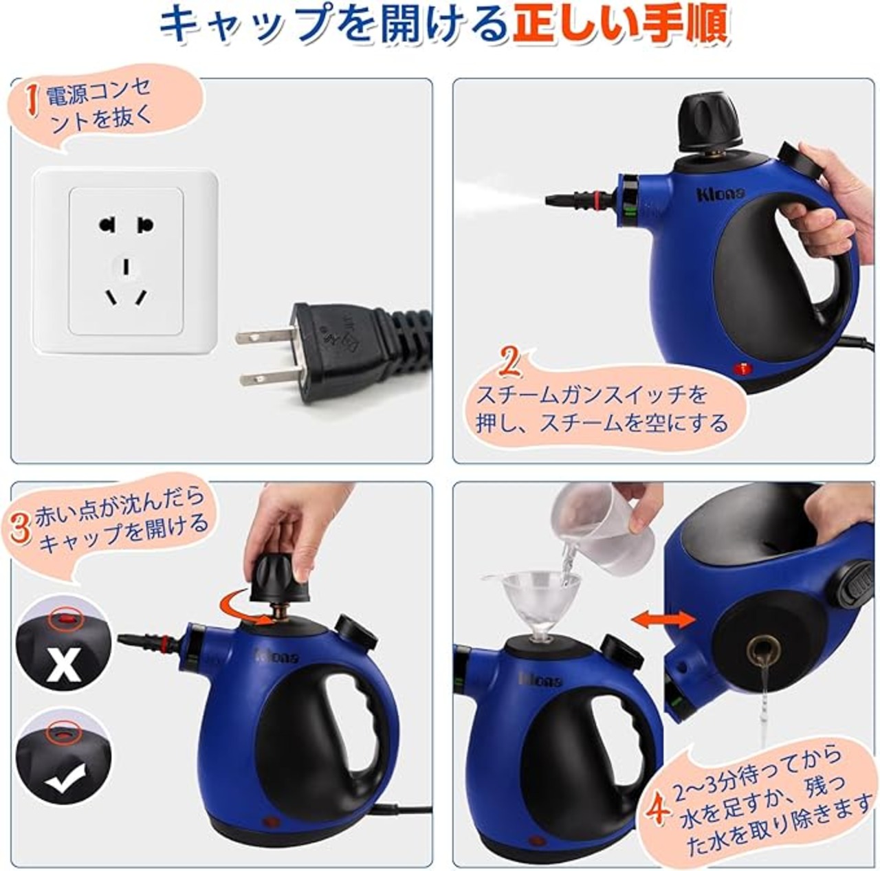 【アクセサリー10点セット】: Klona のスチーマーは、クリーニングとアイロンがけの素晴らしい仕事をしてくれます。付属品10点セット:角度のついたノズル、曲げられるエクステンション、ブラシ付きノズル、布用スチーマーツール、窓/ドア用ゴムワイパーなど。キッチンシンク、畳、カウンタートップ、トイレ、バーベキューグリル、シャワーカーテン、床、子供のおもちゃ、ペットのマットレス、ソファ、車、衣類など。