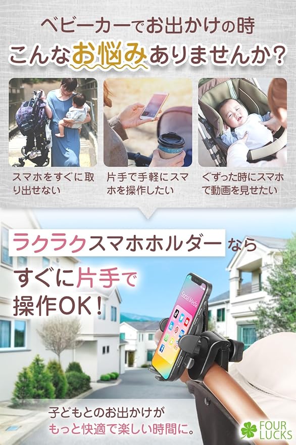 FOUR LUCKS ベビーカー スマホホルダー ベビーカー 携帯ホルダー スマホホルダー 自転車 ドリンクホルダー 取り付け簡単