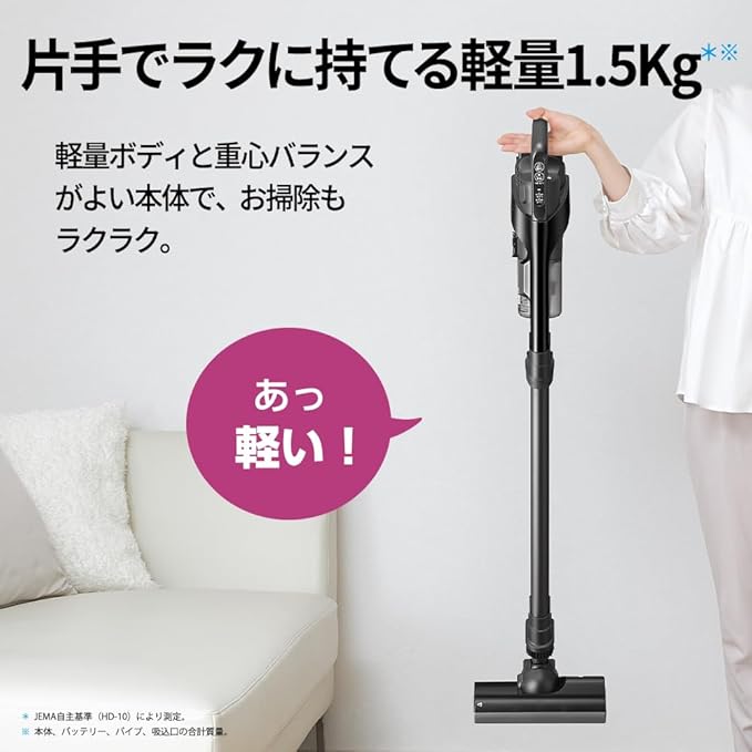 軽量1.5kgかつバランスよく軸がブレにくいから快適にお掃除できる