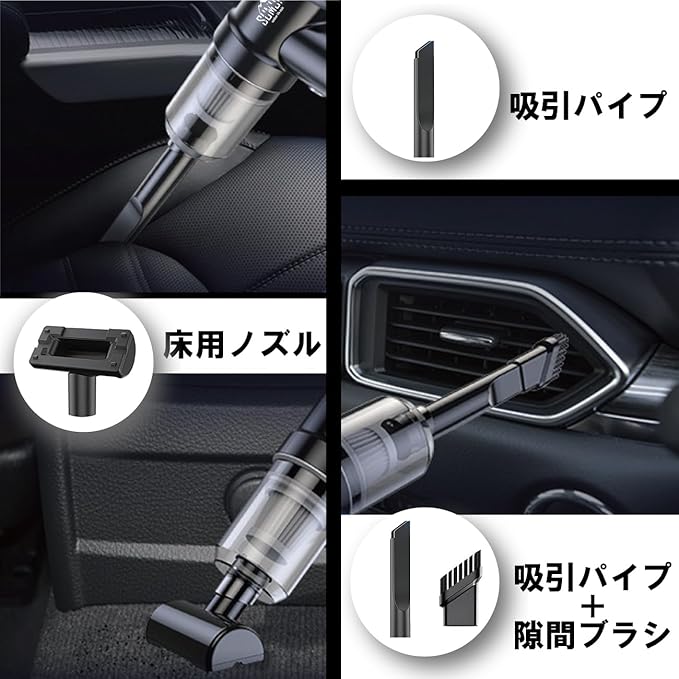 【付属品】吸い込む用)隙間ブラシ1個、吸引パイプ1個、床用ノズル1個、吹き飛ぶ用)ノズル1個、ノズル用ブラシ1個、ロングノズル1個、充電ケーブル1本、日本語/英語 取扱説明書1部