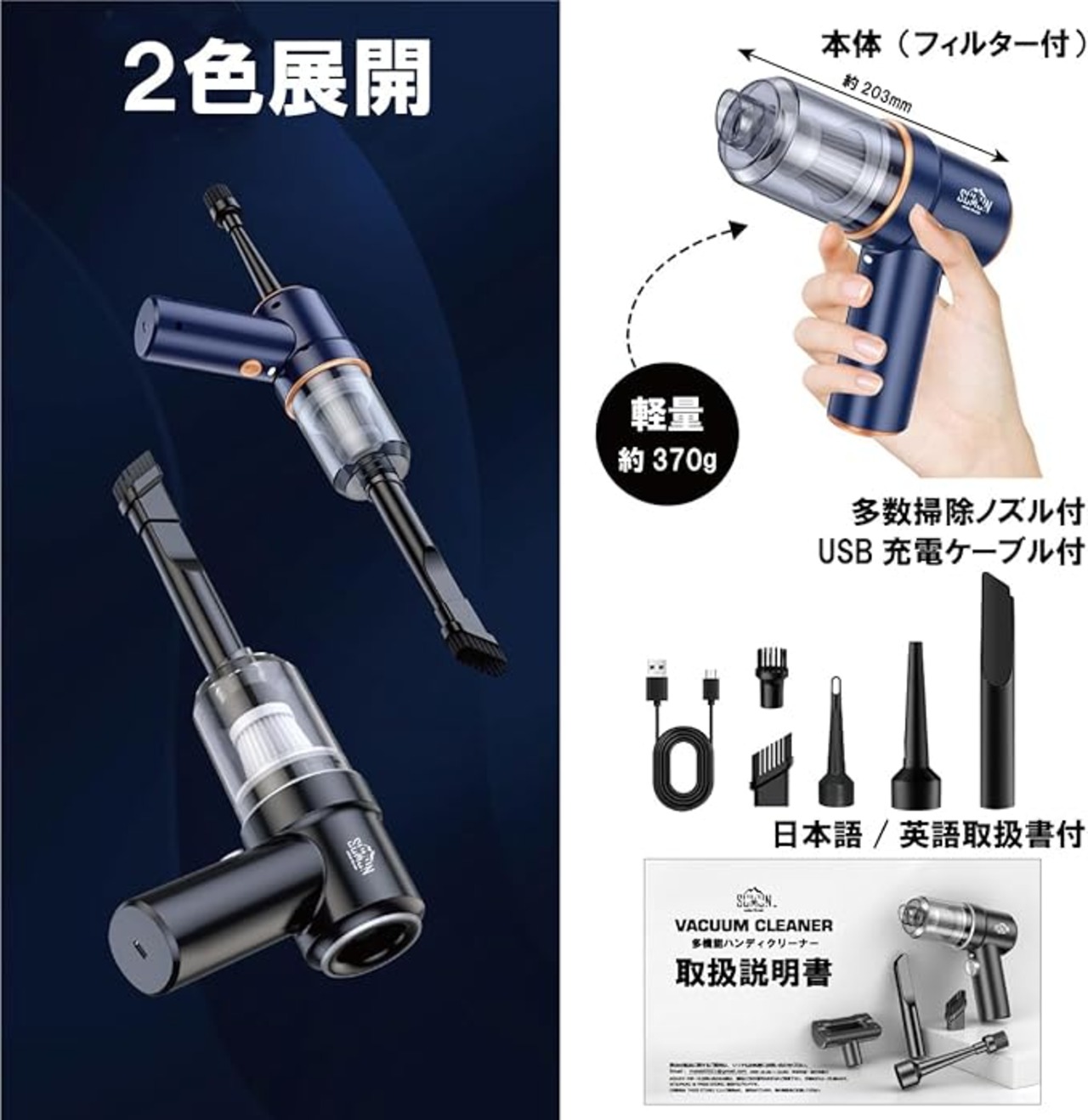 【新登場】ハンディクリーナー 多機能 車用掃除機 ミニ掃除機 強力吸引力 コードレス カークリーナー Type-C 充電式 小型 低噪音 LEDライト 【吹き飛ぶ/吸い込む/空気入れ/空気抜き】車載ミニポータブルコードレス掃除機 軽量 家庭用 キーボード掃除 車内清掃 日本語説明書 (ブルー) 多種類ノズル付き フィルター水洗可