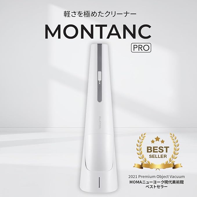 BLUEFEEL コードレスハンディクリーナー MONTANC(モンタン)は、超強力な吸引力「16,900Pa」を誇るコンパクトで軽量なハンディ掃除機です。独自設計されたBLDC++モーターが強力な吸引力を生み出し、