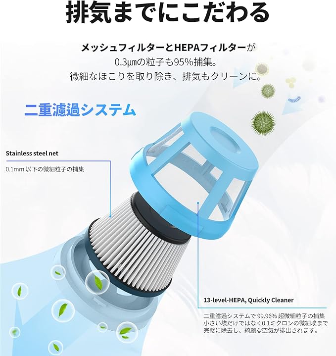 ハンディクリーナー Cleanin Nook 【コードレス/充電式/軽量設計/強力吸引/コンパクトサイズ/コンビネーションノズル付属】 ブラック