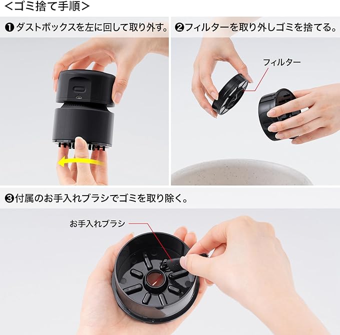 ●机の上の小さいゴミやホコリを手軽にクリーニングできる卓上クリーナーです。