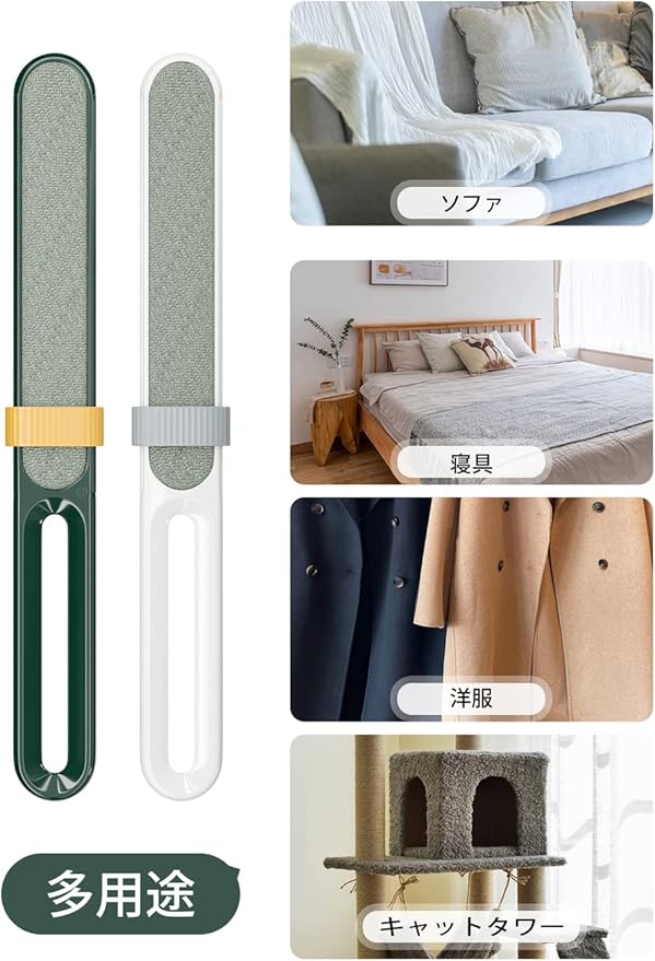【多用途】ソファなどの家具や寝具、洋服、カーペットについたペットの抜け毛やホコリをさっと取り除くことができるほこり取りブラシ。洋服、フォーマルウェア、ソファー、 キャットタワー、車のシートなどに付いた髪の毛、ほこり、フケ、糸くず、ペットの抜け毛、洗濯クズなどを掃除するにオススメ!アイロンをかける前の洗濯屑等がつきやすい生地のお手入れに最適です!