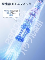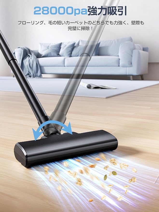 【最大40分連続稼働】コードレス掃除機は7500mAhの大容量バッテリーが内蔵され、エコモードで最大40分連続稼働。吸引力が28KPaまでに達し、パワフルな吸引力を生み出し、ゴミ取り能力がアップ!