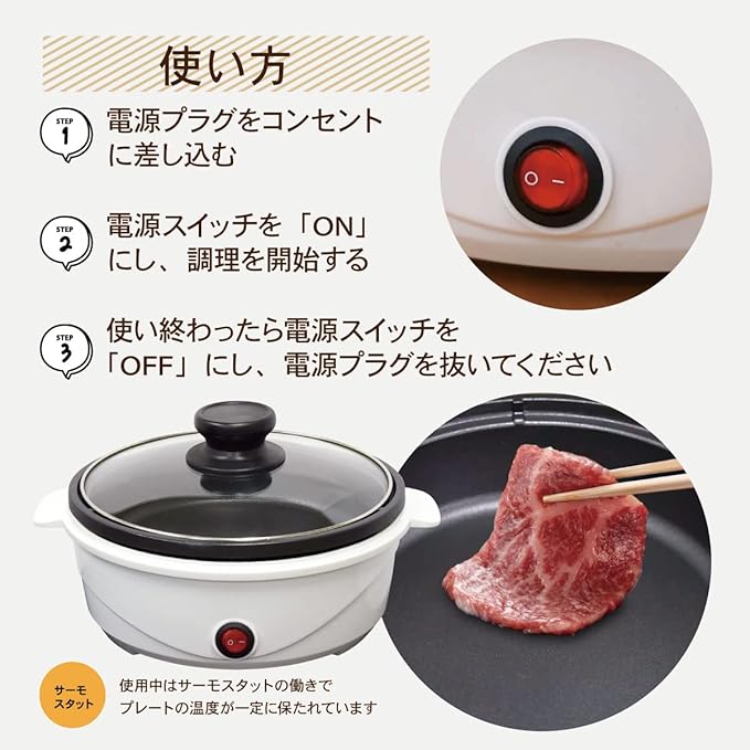 食卓でちょこっと調理してササッと食べたい時に!一人鍋にも最適!具材を入れてスイッチONするだけ!
