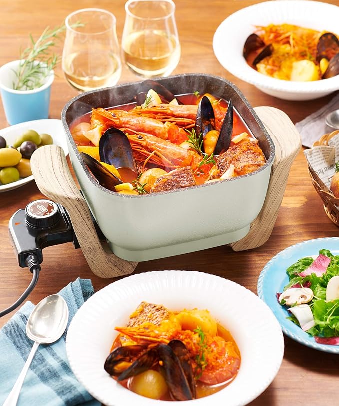 「煮る/焼く/蒸す/炒める/揚げる/炊く」の調理ができる1台6役の多機能電気鍋! 熱効率が良くお手入れが簡単な“ヒーター一体型構造”で、コンパクトなのに、約2.8Lの満足サイズを実現。 一人暮らしはもちろん、2~3人の家族の食事やパーティーでも大活躍!