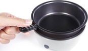 サイズ】約W17 D13 H11cm(本体)約W15.5 D15.5 H15cm(箱) 【材質】アルミ・フェノール樹脂・PPS・ステンレス・PA・ガラス 【重量】約530g(本体)、約650g(箱込) 電源:AC100V 50/60Hz。消費電力:260W プレート最高温度:約190℃(取手付き鍋)、約200℃(本体プレート) 【注意事項】 ※本体プレートは取り外しできません。 ※取手付き鍋と本体プレートはフッ素樹脂加工済み。 ※温度調節不可 【セット内容】グリルプレート本体 1台 取手付き鍋 1個 取手付きフタ 1個 鍋も焼肉もこの1台で楽しめる1人用の鍋&グリルプレートセット。直径約12cmの卓上サイズなので、1人での晩酌にも手軽にご使用できます。 使い方はとっても簡単、取手付き鍋を外すだけで焼肉プレートに早変わり。焦げ付きにくいフッ素加工で表面をこんがりと焼き上げます。