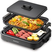 MAXZEN ホットプレート 鍋 焼肉 温度調整 プレート グリル鍋 お好み焼き 2枚 一人用 家族 減煙 丸洗い 電気プレート コンパクト ヒーター式 卓上 フタ付き 黒 MHP120MT201-BK マクスゼン