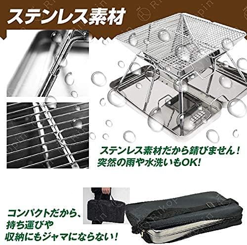 Rikopin(リコピン) 大型 焚き火台 バーベキュー コンロ 収納ケース付 コンパクト グリル 折りたたみ BBQコンロ 2-4人用 ステンレス 軽量 サイズ:43 43 27cm (大型サイズ)