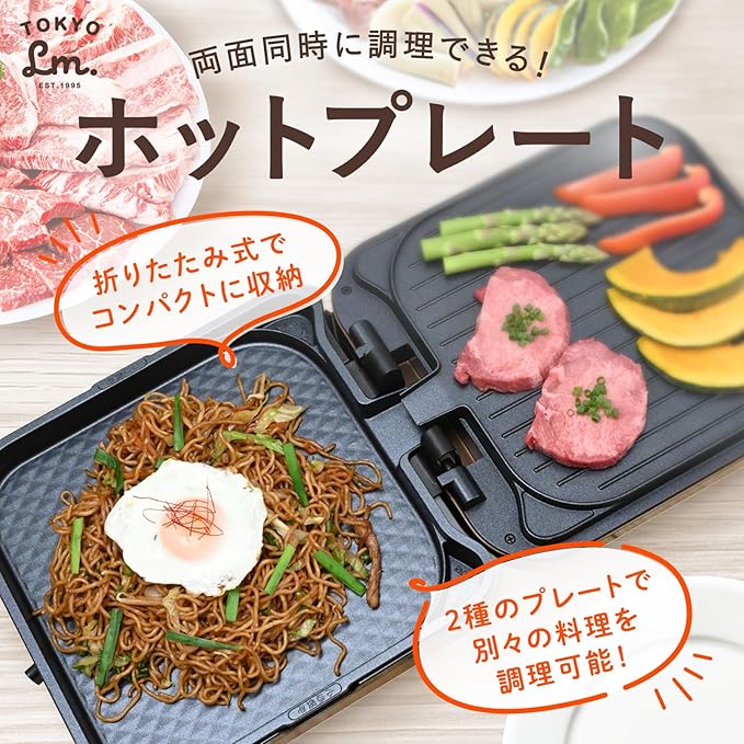 TOKYO LM ホットプレート ミニ 焼き肉プレート 両面 一人用 二人用 折りたたみ 調理家電 一人焼肉 小型 一人暮らし 新生活 2つ折り収納 焼肉 お好み焼き (クリーム)