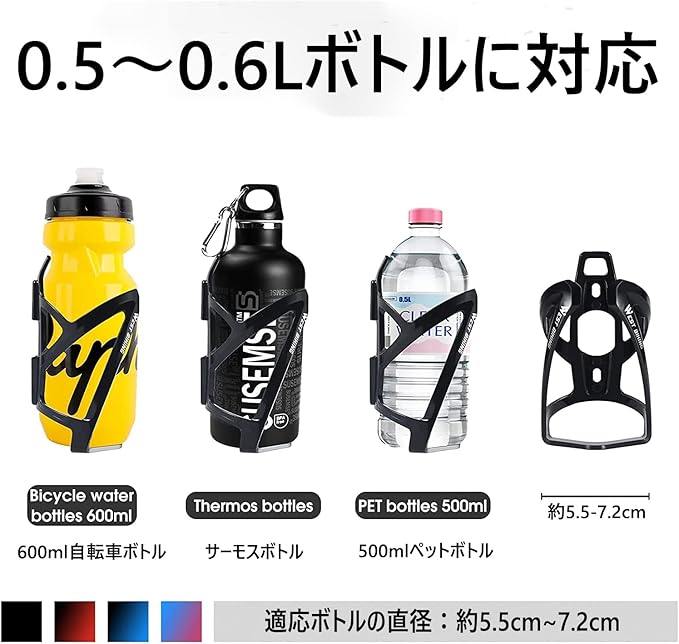 【あらゆる場面に対応】ペットボトル、水筒、ドリンクボトル、レーサーボトルなど、様々なサイズのボトルが収納できます。ボトルケージにドリンクをセットしておけば、走行途中でもサッと取り出して飲むことができて、水分補給を維持しています。熱中症対策にバッチリ、長途のお出かけにも安心です。自転車ロードバイク、クロスバイク、マウンテンバイク等のフレームに取り付けて、おしゃれにボトルを収納できます!