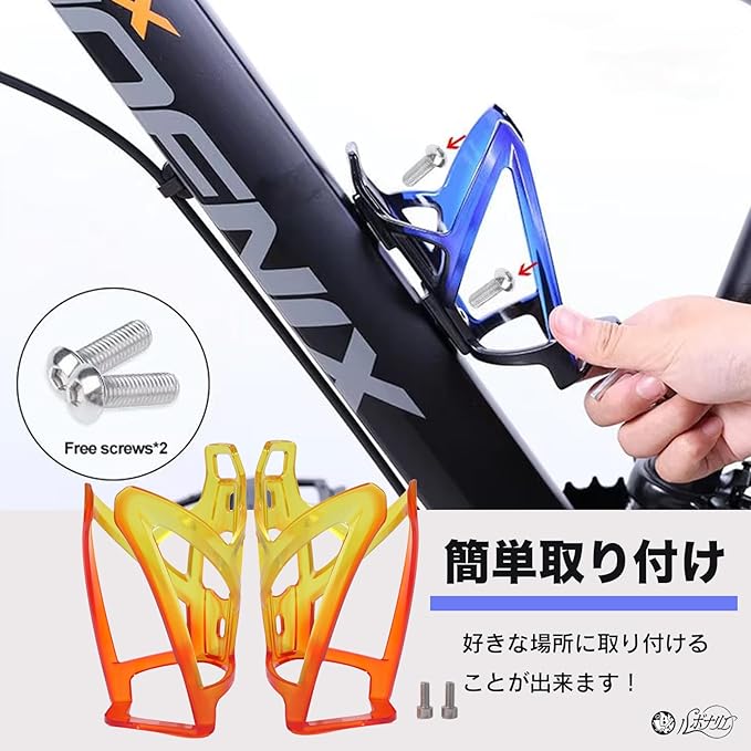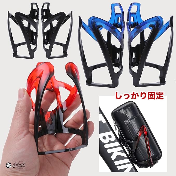 約40gの軽量設計で、ロードバイクやクロスバイクに取り付けても走行性能を損なうことなく、快適なライディングを実現するボトルケージ2個セットです。5カラーご用意いたしましたので、お好みに合わせてお選びください。