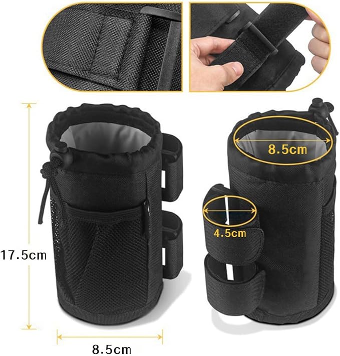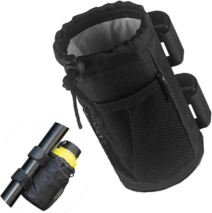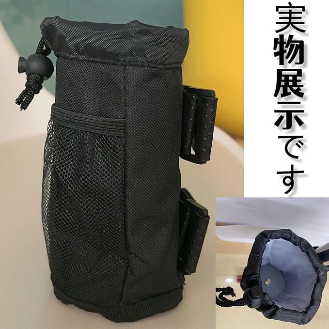 Ginhkok 自転車 ドリンクホルダー バイク ボトルホルダー ボトルケージ ドリンクホルダー ハンドルバーバッグ 保冷 角度調整可能 携帯収納付きメッシュポケット付き 360度回転 脱着可能な 収納便利 取付簡単 ブラック カップホルダー ボトルホルダー 車椅子 オートバイ ATV ゴルフカート スクーター ロードバイク ベビーカーに適用