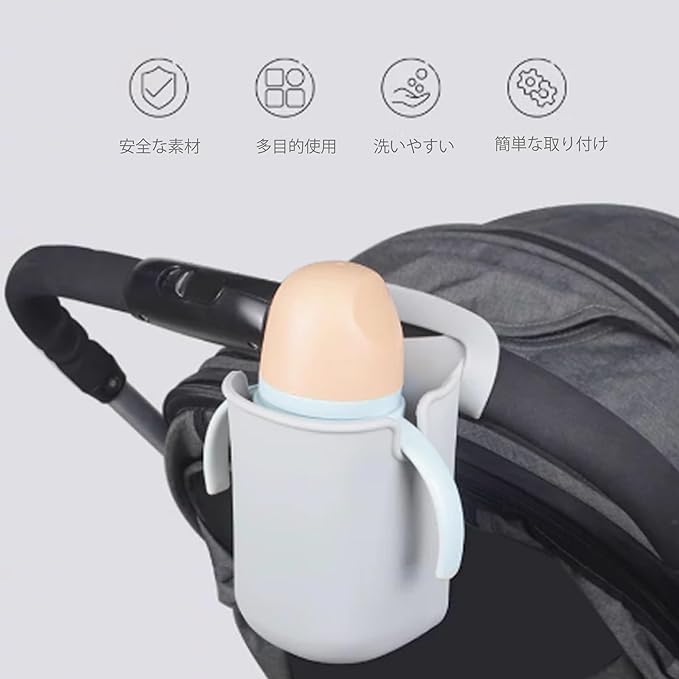 【使いやすい】ドリンクホルダー ベビーカー取り付け不要で、アームレストに置くだけで使用できます。簡単かつ便利です。