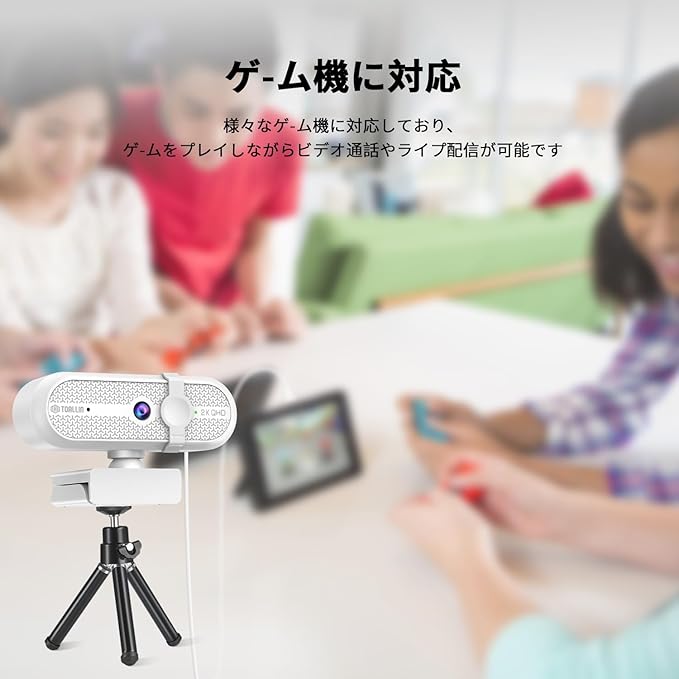 TOALLIN 2K ウェブカメラ ゲーム用 500万画素 マイク内蔵 90 広角ウェブカメラ 三脚付き USBコンピューターカメラ ノートパソコン用 ライブストリーミング ビデオ通話
