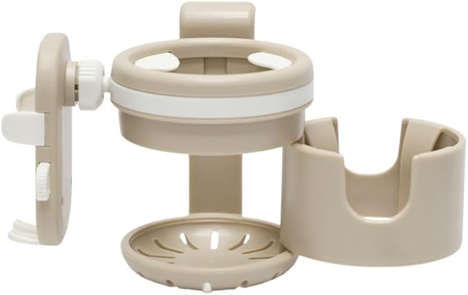 ベビーカードリンクホルダー ベビーカー カップホルダー アクセサリー スマホ ベビー アクセサリー スマホ 2本収納 哺乳瓶 飲み物 360度回転 角度調整 取り付け 車 自転車 (グレージュ)