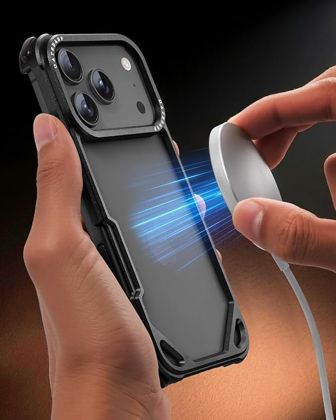 素材&保護機能:for iPhone 17 Pro Max バンパーケースは高品質アルミニウム合金で製造され、隆起したベゼルと全コーナー耐衝撃設計を組み合わせて、iPhone をより確実に保護します。