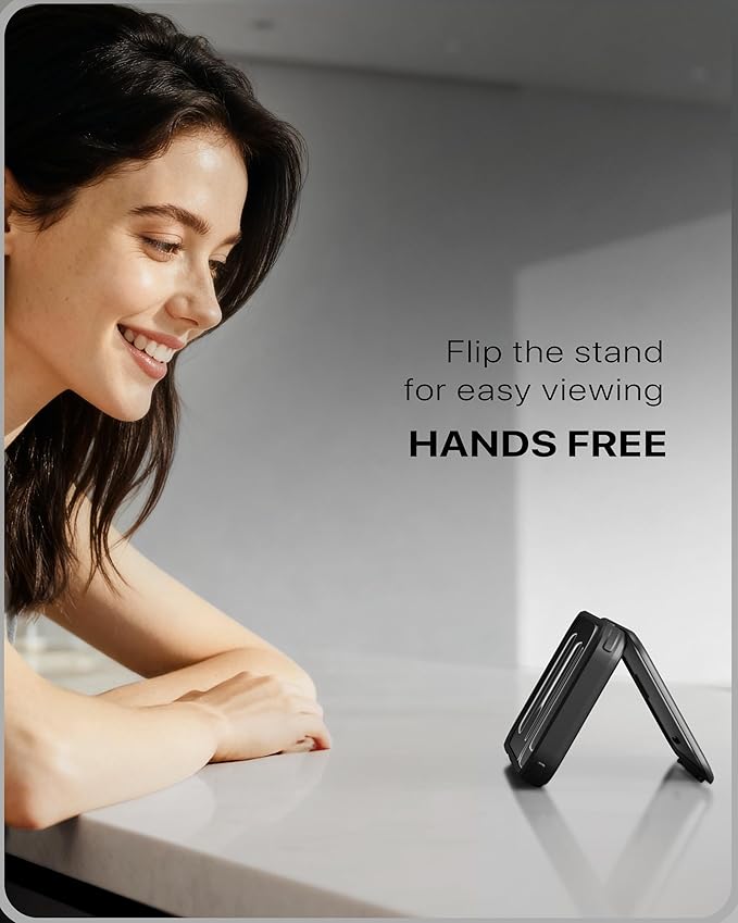 キックスタンド&必需品収納 – 背面フラップが安定したハンズフリースタンドに変身。さらに着脱可能な高品質調節ストラップとカードサイズのミラー付きで、外出先でも便利に使えます。