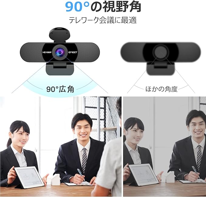 EMEET Webカメラ ウェブカメラ HD1080P 200万画素 90 広角 パソコン用カメラ ストリーミング 内蔵マイク オンライン会議用 自動光補正 EMEETLINK利用可能 1/4インチ三脚穴 Windows 7/8/8.1/10/11 MacOS 10.14及び以上 Youtube, zoomなどに対応 C960