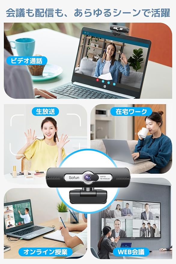 【マイク内蔵&ノイズキャンセリング対応】360 全方向から集音可能なデュアル マイク内蔵 Webカメラ 。ノイズカット機能により、環境音を抑えながらクリアな音声を相手に届けます。別途ヘッドセットが不要で、接続するだけで即使用可能な Webカメラ 。ZoomやSkype、Google Meetなど主要アプリに対応しており、在宅勤務やビデオ通話でも快適に使える 会議用カメラ です。