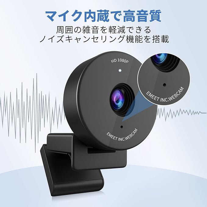 【内蔵マイクによる高音質】EMEET C950 webカメラ マイク付きは全方向マイクを搭載し、どの角度からも明確に収音できます。また、web カメラのマイクはノイズキャンセリング機能も揃い、通話中に雑音を抑えられ、自然かつクリアな音声を相手に届けられます。