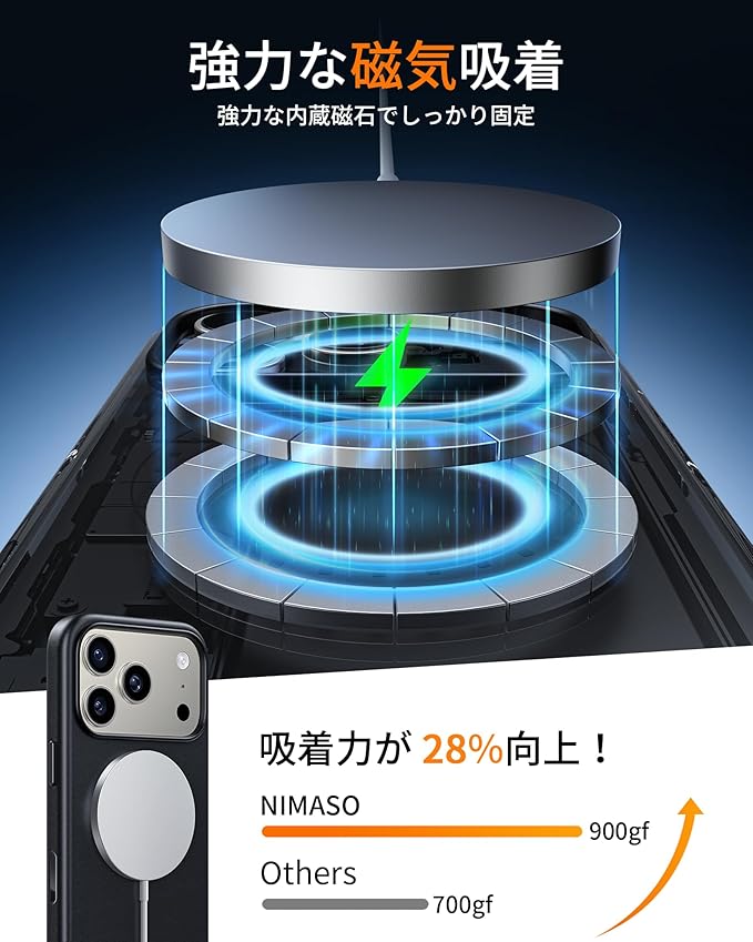 【MagSafe対応・強力な磁力吸着】強力なステルスマグネットを採用。デザインを損なわないよう、外側からはマグネットの位置が分からないようなっています。ワイヤレス充電やMagsafeに対応しておりとても便利です。