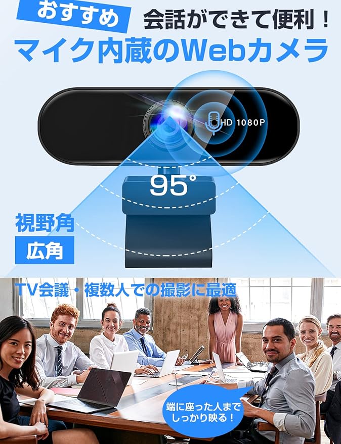 Webカメラ ウェブカメラ フルHD 1080P 【2025年アップグレード版】 高性能 200万画素 マイク内蔵 USB 挿すだけですぐ使える 自動光補正 超広角95 クリップ/スタンド式 三脚対応 外付けwebcam PCカメラ 幅広い互換性 ZOOM/SKYPE/WEB会議/ビデオ通話/テレワーク パソコン Windows Mac Chrome 日本語説明書付き