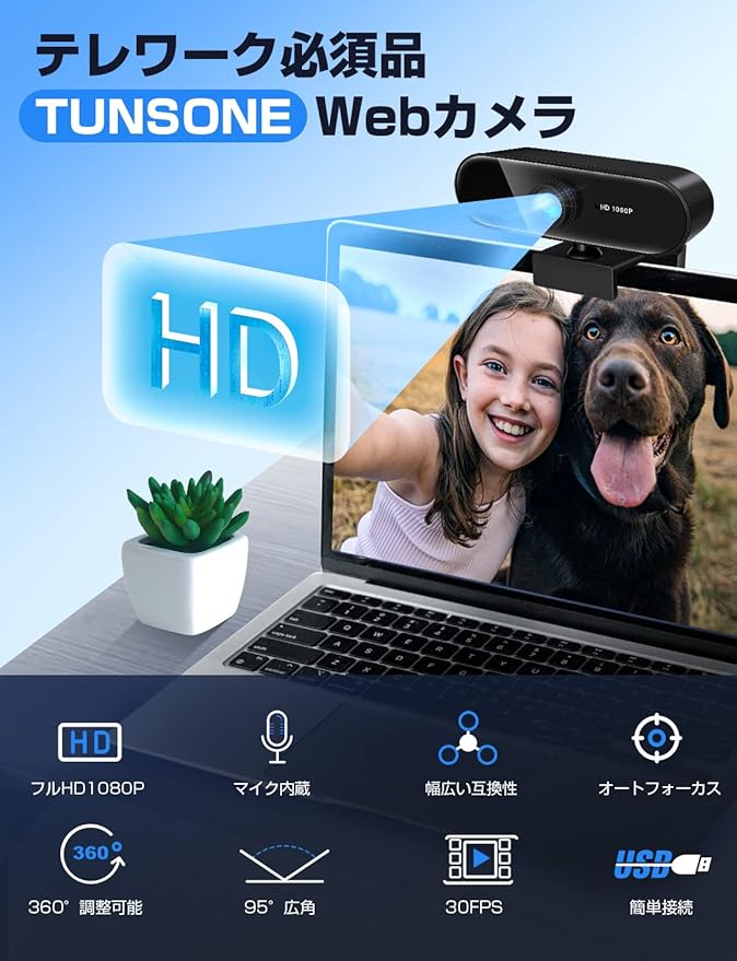 ✨【優れたオーディオ体験をあなたへ】PCについているウェブカメラは解像度が低いため、室内だと暗い印象で写りがちですが、今回発売されたTUNSONEのWebカメラは、色調や露出の補正に優れた自動光補正機能が対応。さらに抜群の高感度と色再現性を実現する日本メーカー製の裏面照射型CMOSセンサーと、多くの光量をとらえるf/2.0絞り値レンズを搭載し、通常のWebカメラよりも細かい所が隅々まで再現できます。 【優れた放送を実現】ピントを被写体に自動的に合わせる機能により、遠景はもちろん近距離の文字にも自動的にピントが合い、くっきりと鮮明な画像をお楽しみいただけます。